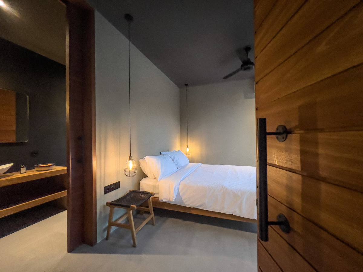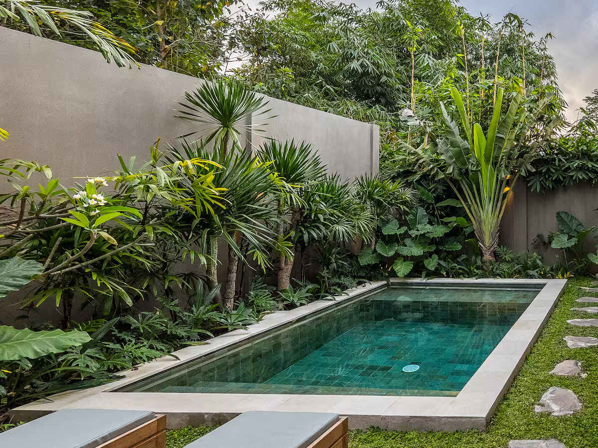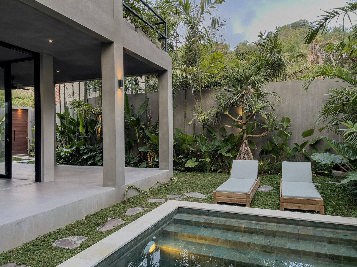 A modern two-bedroom villa in the heart of Kuta, Lombok, surrounded by tropical gardens and natural light. The open living area connects to a private pool for a calm, refreshing stay. Relax on sun loungers, enjoy slow mornings with garden views, and explore nearby cafes, restaurants, yoga studios, and beaches. Ideal for couples, friends, and anyone seeking peaceful comfort close to everything.
