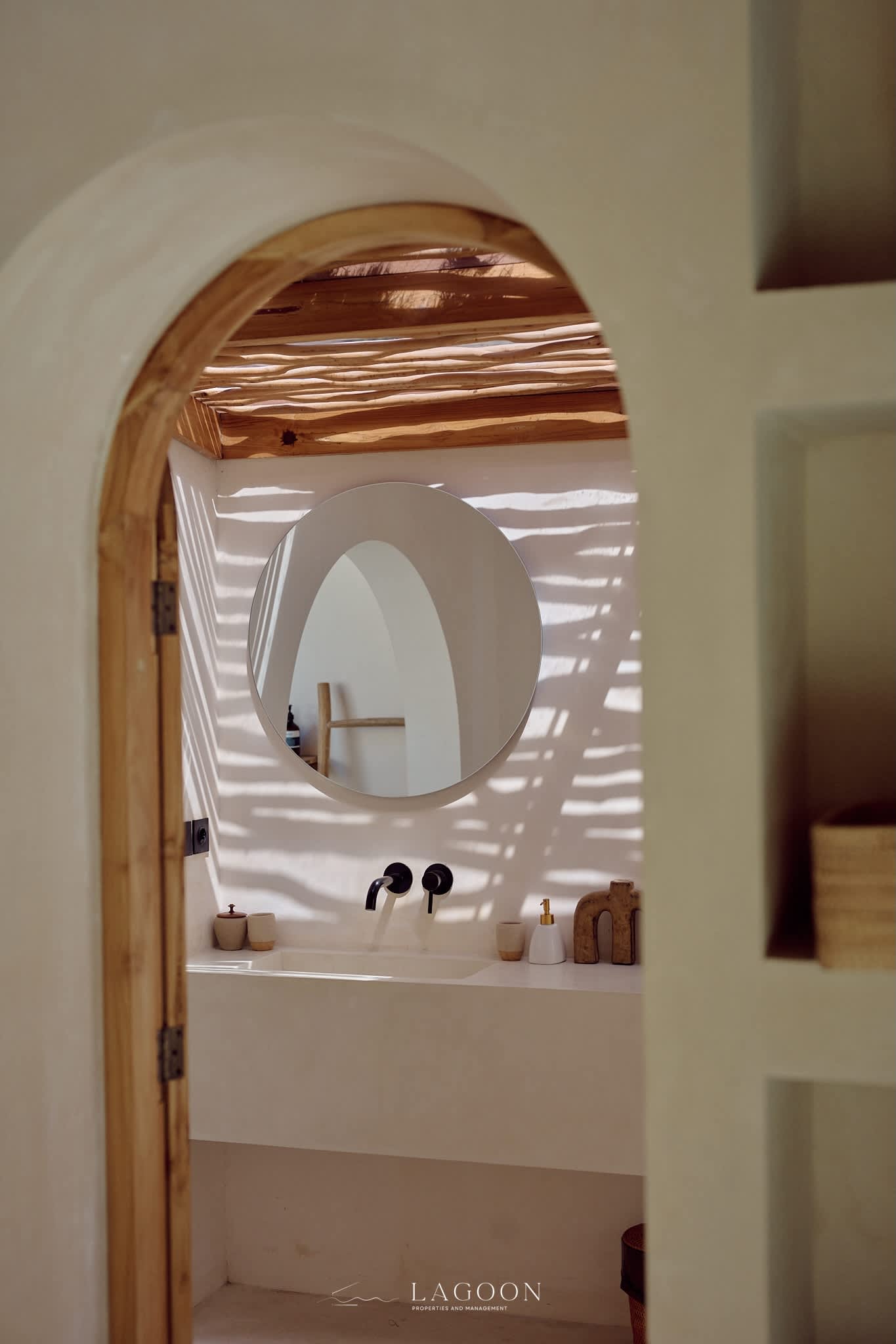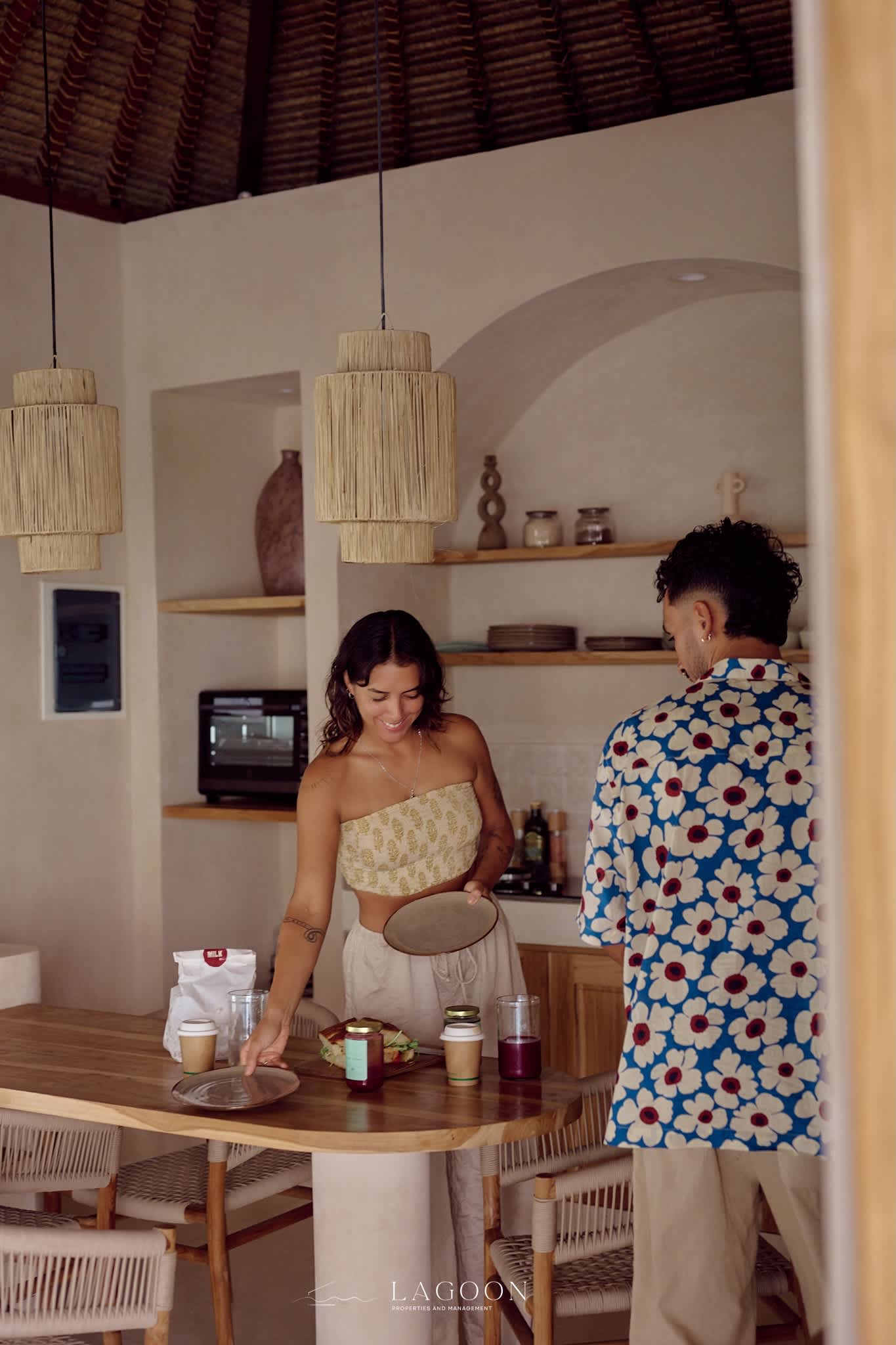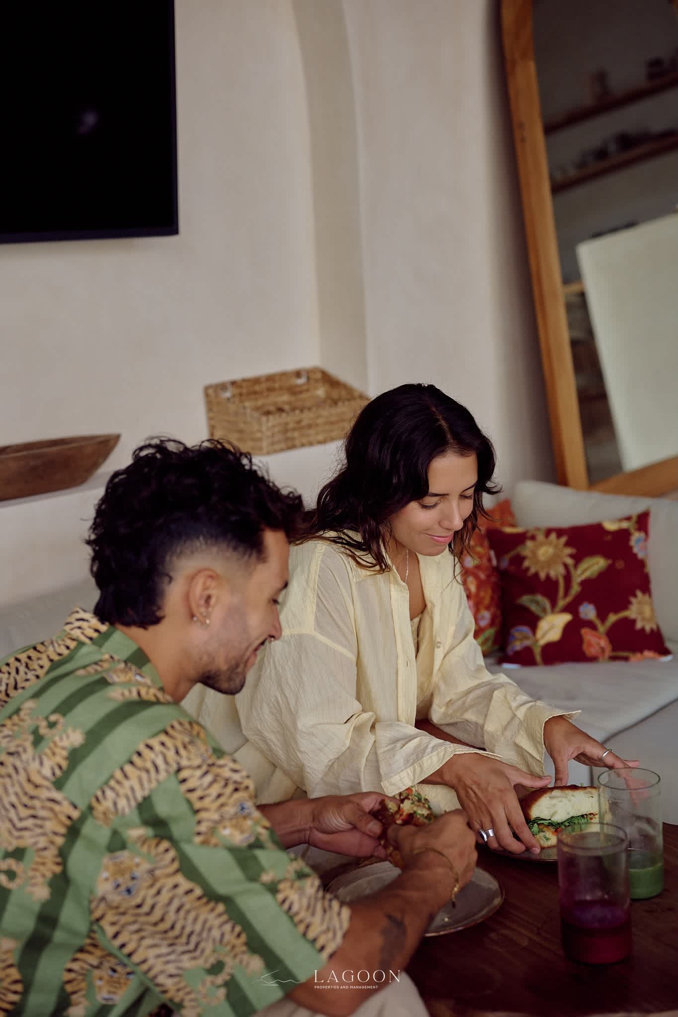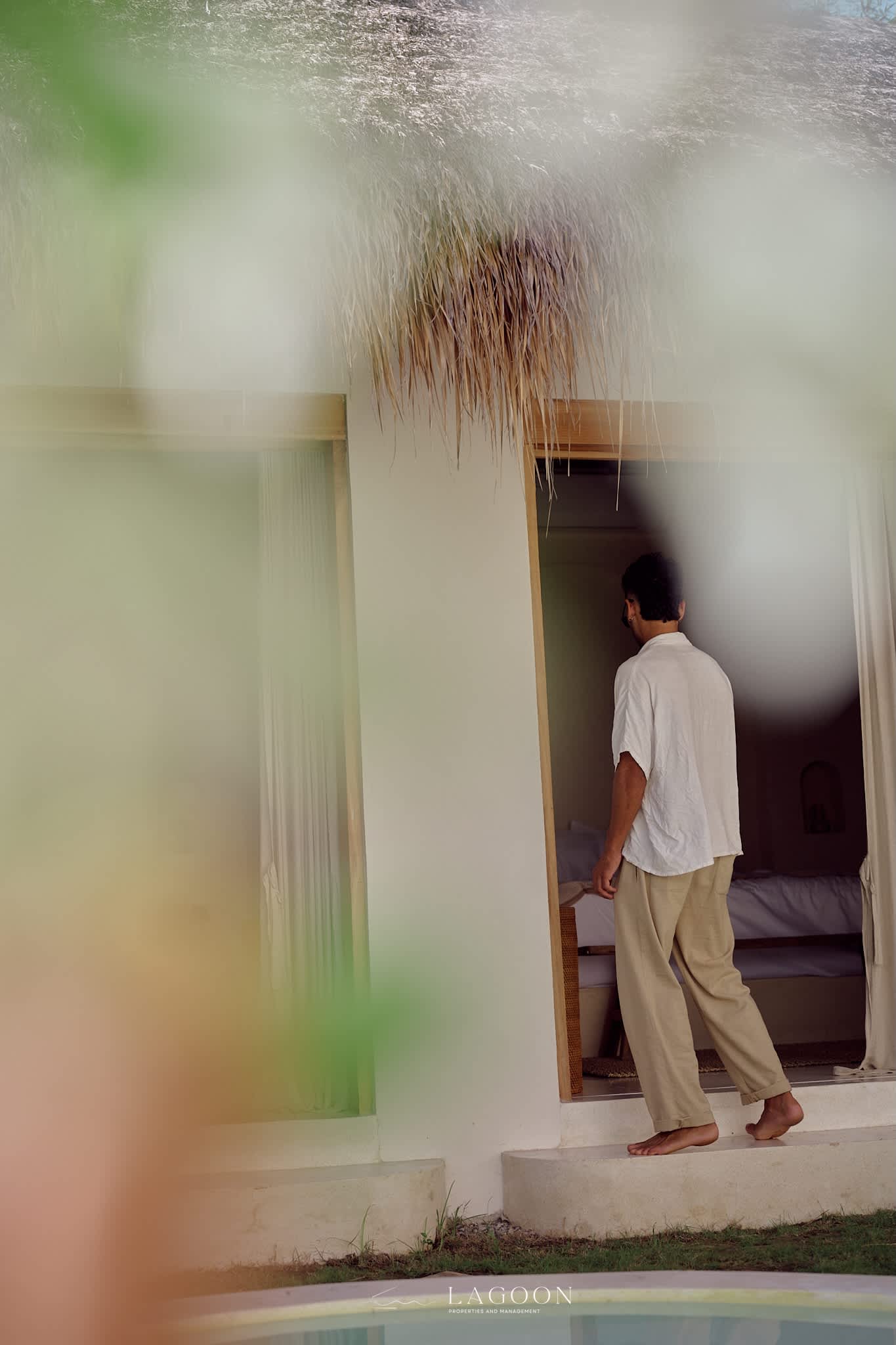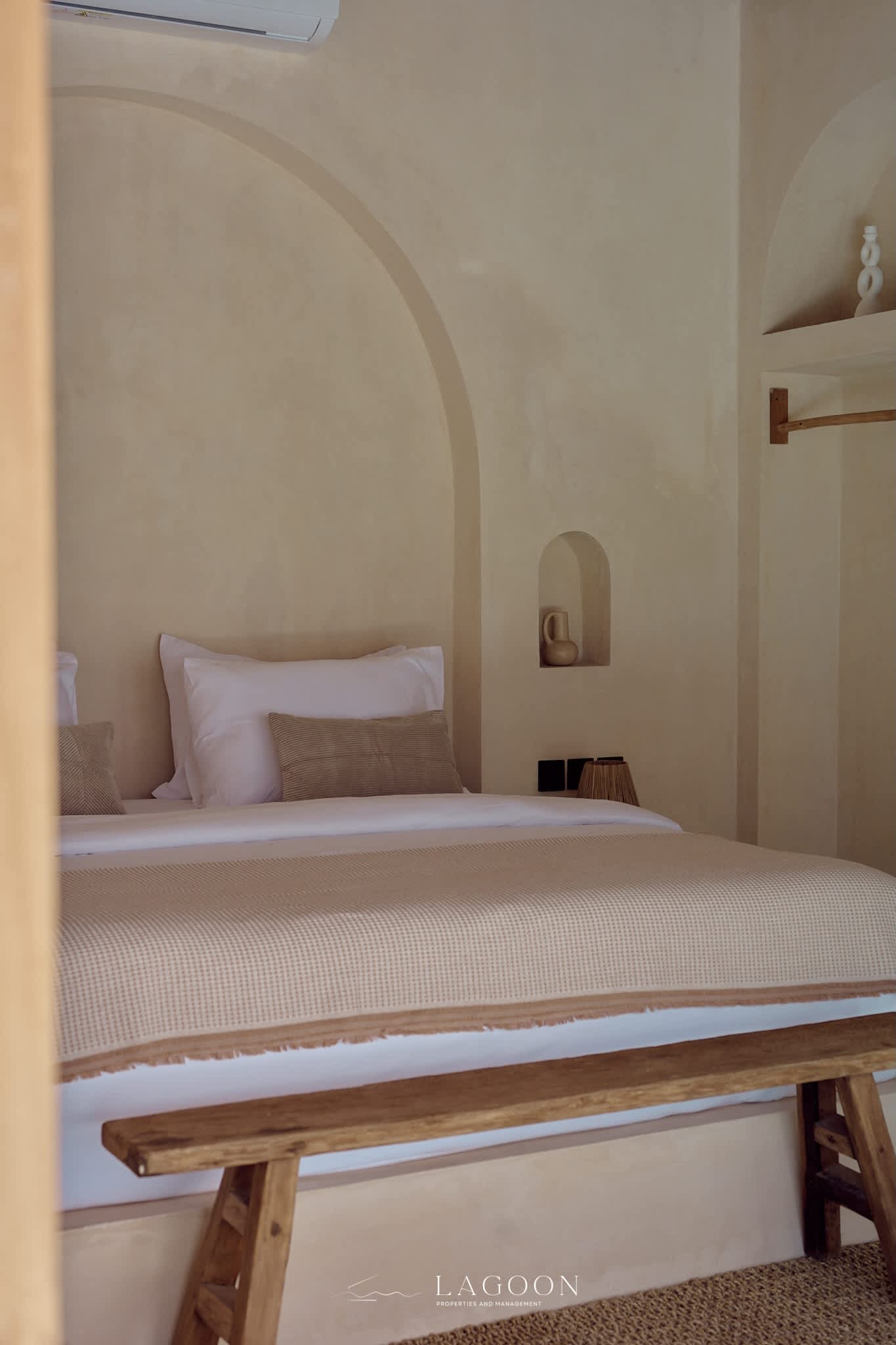 Chic, cozy, and made to be photographed – this beautiful villa features 2 bedrooms, 2 bathrooms, a sunken sofa, outdoor living area, full kitchen, and private pool.